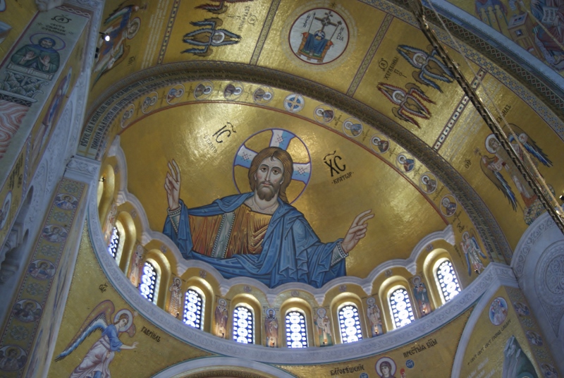 El interior es de ensueño, con una imagen de un Cristo Pantocrátor que da la bienvenida al visitante y que te atrapa durante todo el recorrido; pero Cristo no está solo, se ve acompañado por ángeles, vírgenes y múltiples figuras religiosas que se expresan en forma de mosaicos o pinturas murales y recubren cada rincón de esta joya de la ortodoxia.